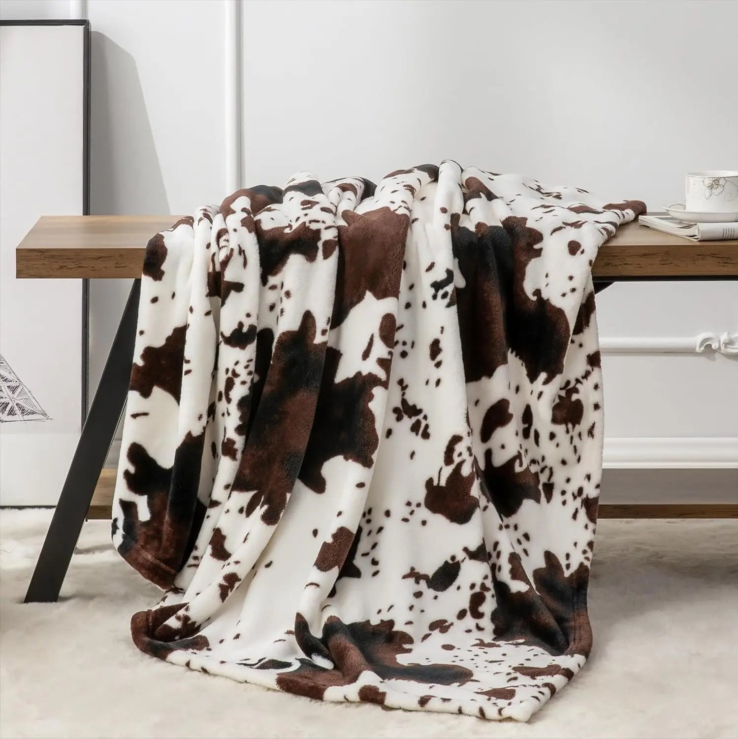 Crafted from ultra-soft, plush fabric the Frontier Cowprint Plush Blanket combines cozy comfort with rustic charm. Lightweight yet durable, its bold cowhide print adds a touch of farmhouse style while keeping you warm at home, on the road, or under the stars.